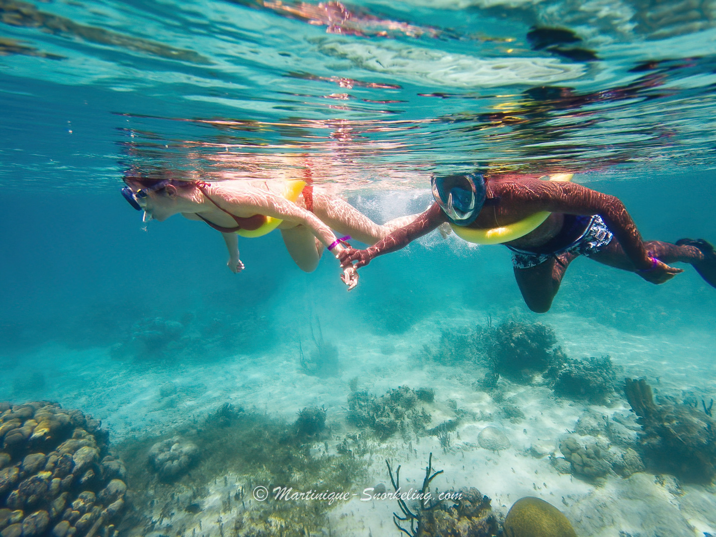 Equipped with flippers, mask and snorkel (and wetsuits for those who want them), you will head to a preserved natural site, chosen according to the conditions of the day to ensure the best possible experience. Once in the water, you will swim above colourful corals of various shapes, encounter a multitude of tropical fish and, with a little luck, peaceful turtles or even rays.