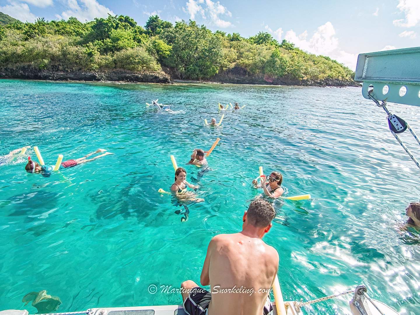 On board, enjoy a friendly moment over a snack: fresh juice or homemade planteur accompanied by a local sweet treat. This is an opportunity to share your impressions, admire the bay’s paradisiacal setting once more, and conclude this unforgettable experience before returning to port.