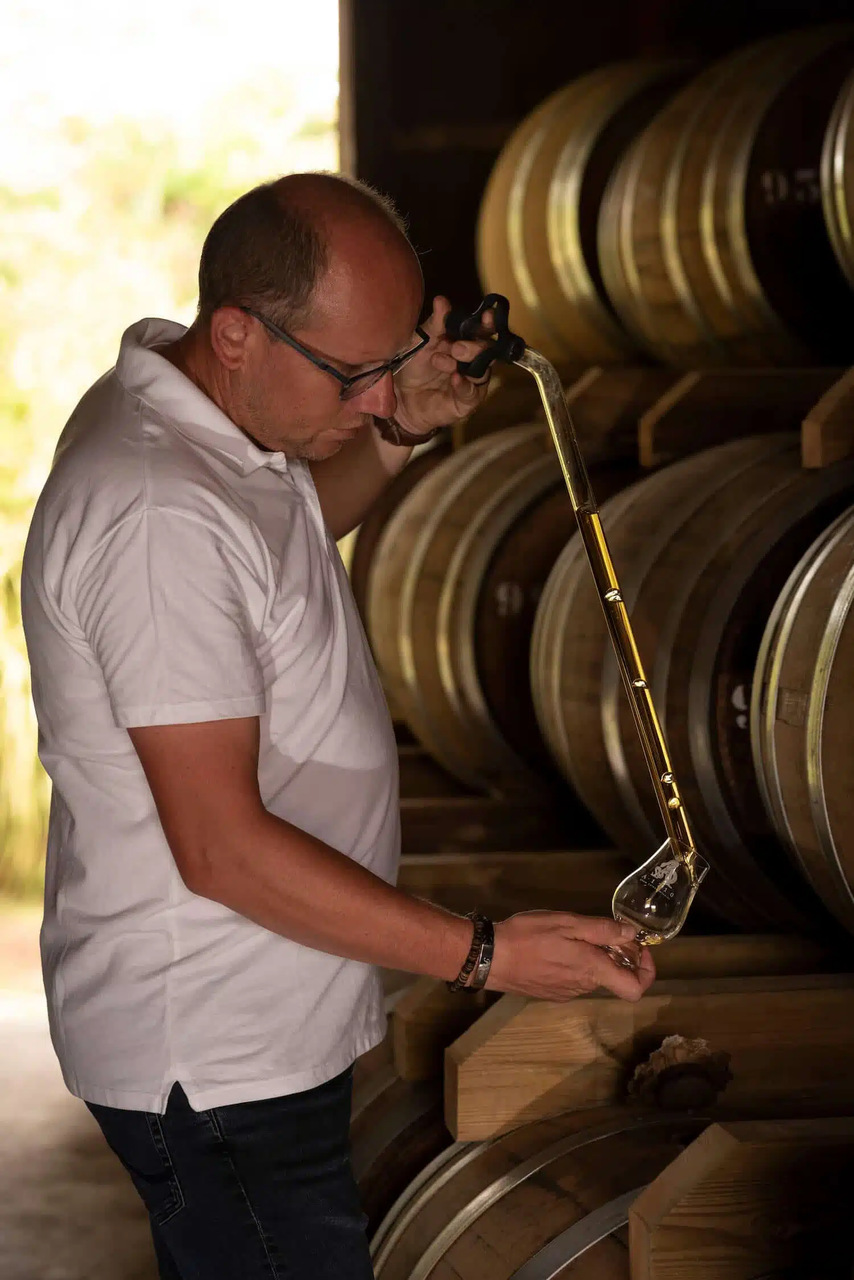 Welcomed by a passionate craftsman, you will learn the secrets of refining and ageing. The cellar master, Moéana Risal, will guide you through the selection and evaluation of the barrels, introducing you to the unique characteristics that make A1710 rums so exceptional.